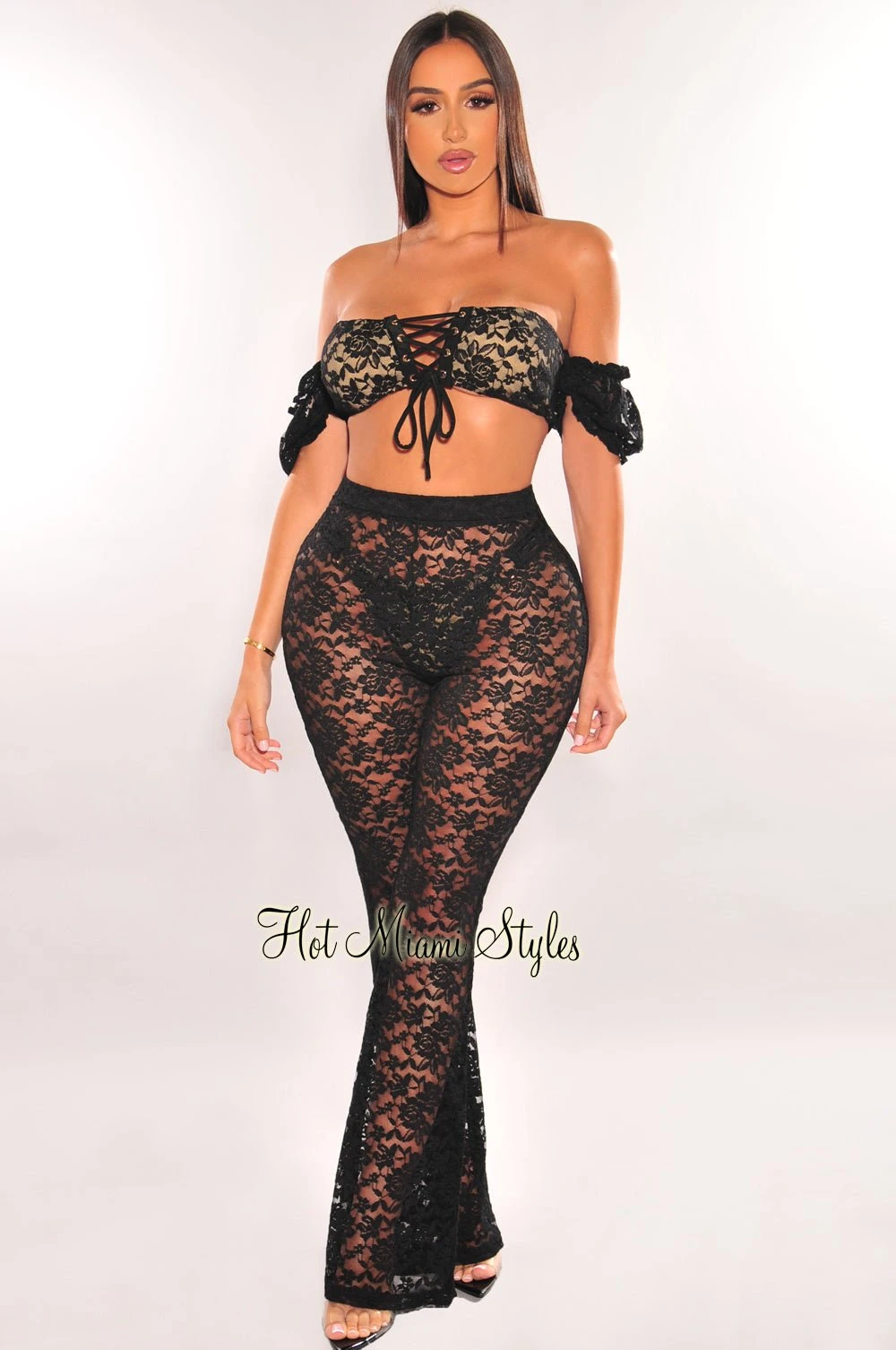 Steal all the stare’s this vacay season. Featuring a lace sheer floral print fabric, high waistline with fashionable flare hem.Â