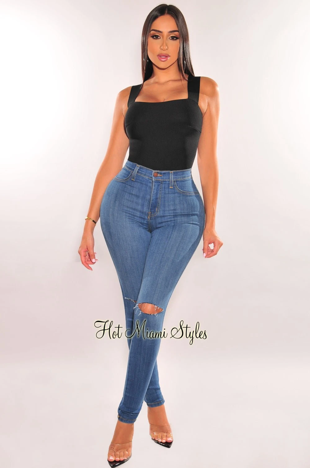 You won’t find a bodysuit that fits better than this. Fits like a GLOVE! Made of tight fitting bandage fabric and features a flattering squared neckline.
