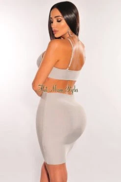 Burnt Orange Ribbed Knit Plunge Neck Long Sleeve Midi Dress + Bralette