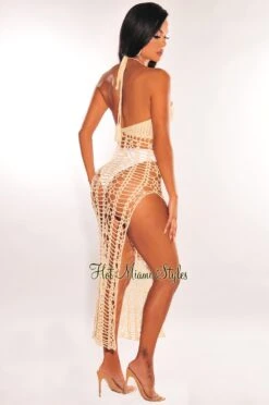 Be the goddess you are in this caramel shimmery maxi dress! Featuring a twist rope design, cut out detail and slit for the ultimate look.