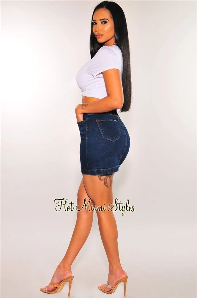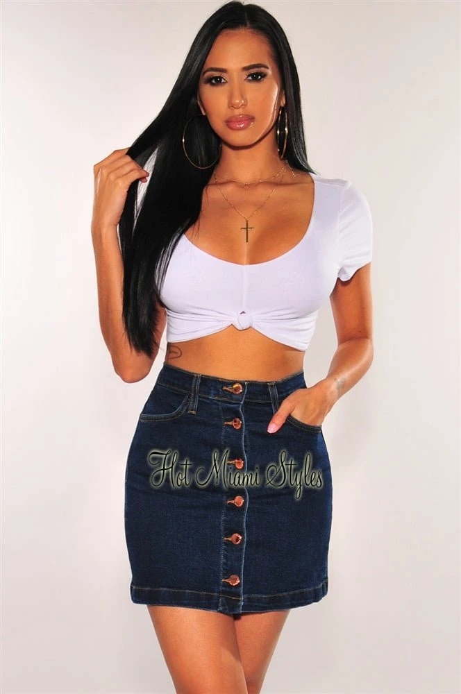 Chic style done easily in this button up skirt. Features rose gold buttons, a high waist and made of stretchy fabric for a perfect fit.