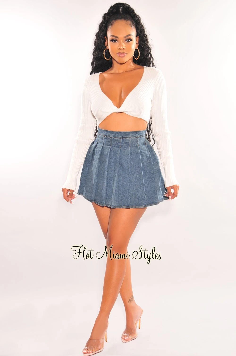 We’re obsessing over this denim tennis skort that goes with any and everything. Features a pleated design and a stretch for the perfect fit.