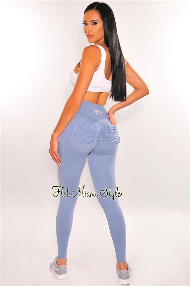 HMS Fit: Dusty Blue Scrunch Pockets Butt Lifting High Waist Leggings