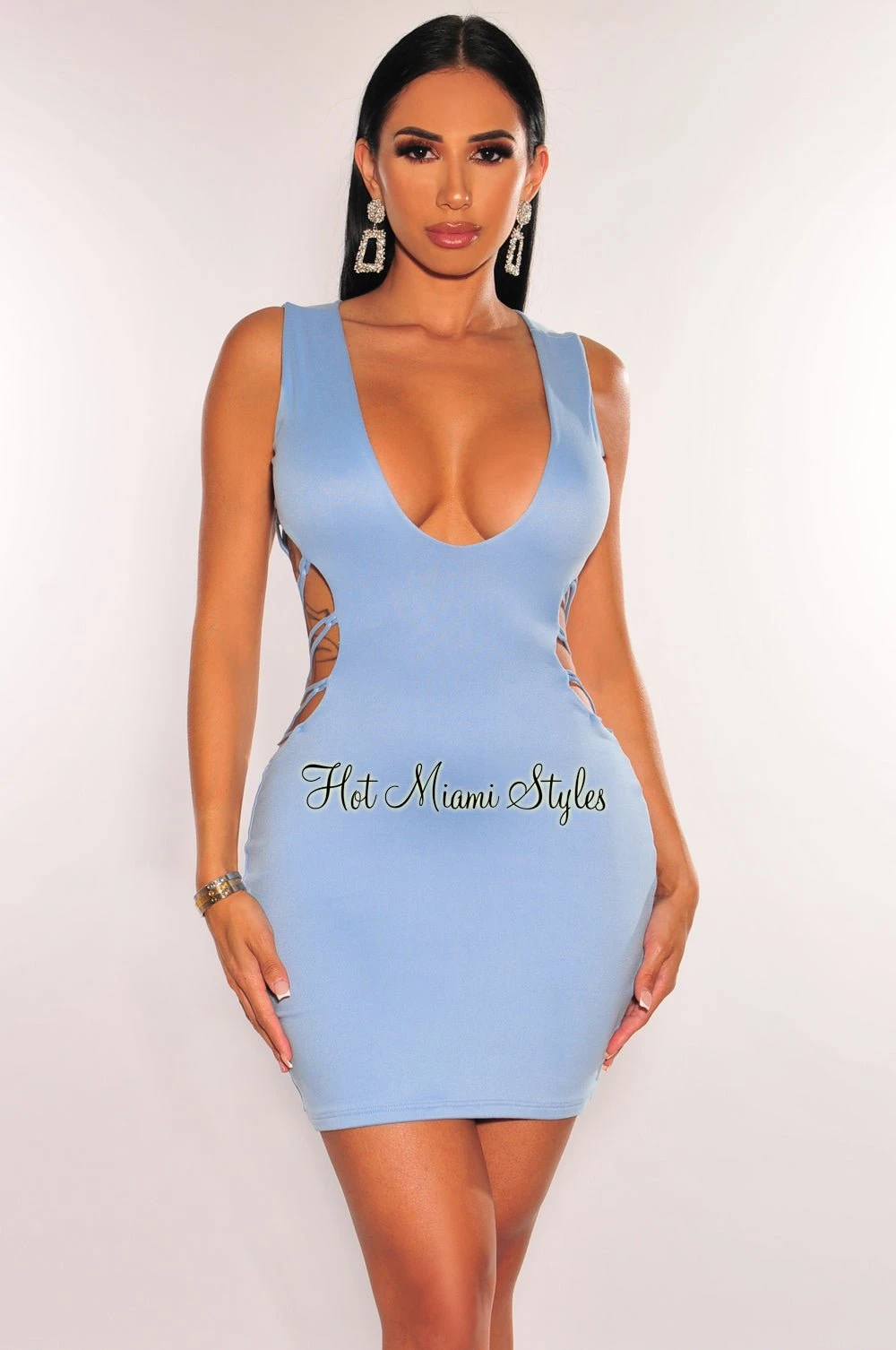 Feel classy yet sexy in this v neck dress. Features a strappy open back design for that desired sultry look.Â