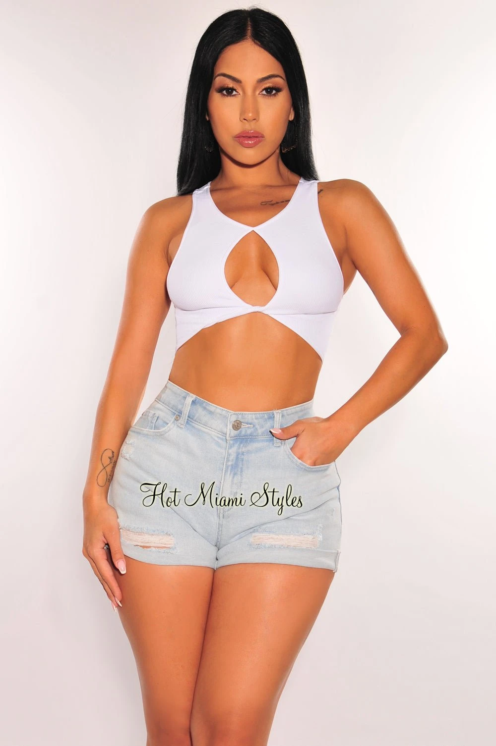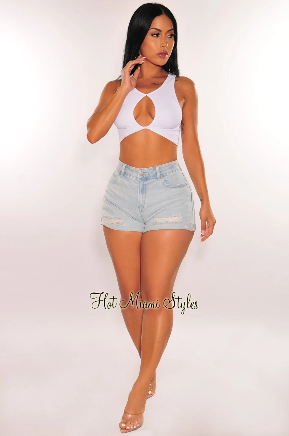 The perfect pair of shorts have arrived. Designed with ripped and distressed details on a mid rise fit.