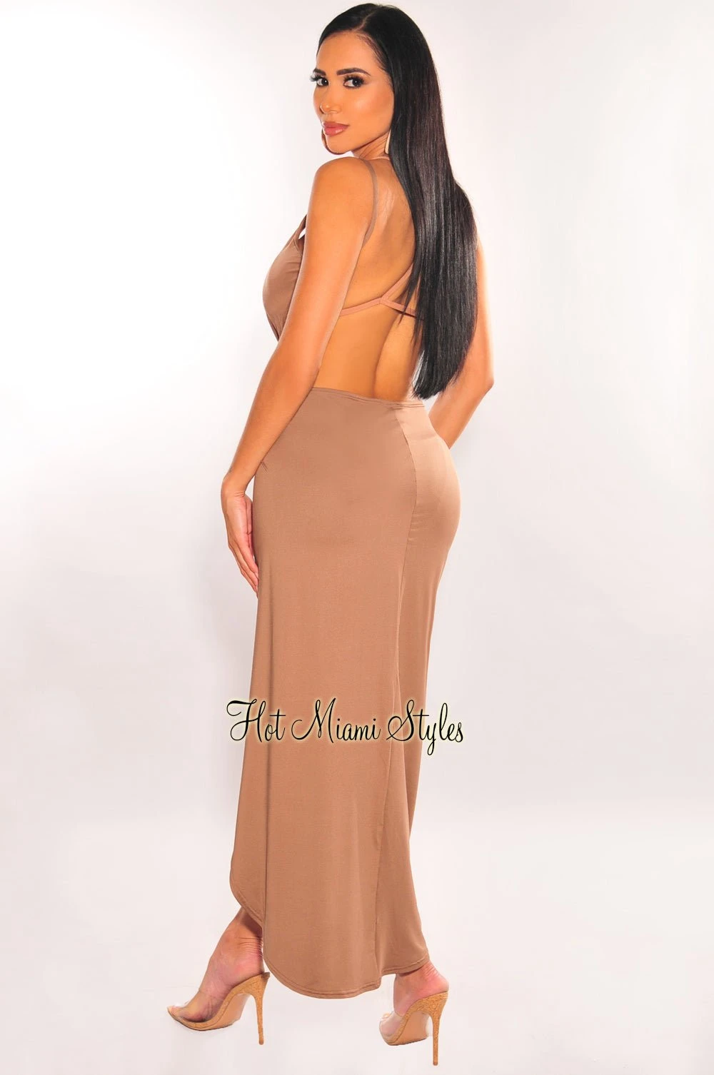 Babe, this cover up will for sure have them all looking! Designed with a sleeveless wrap around design for a super cute overlay look and a sexy open back. Pair with your favorite HMS swimwear.