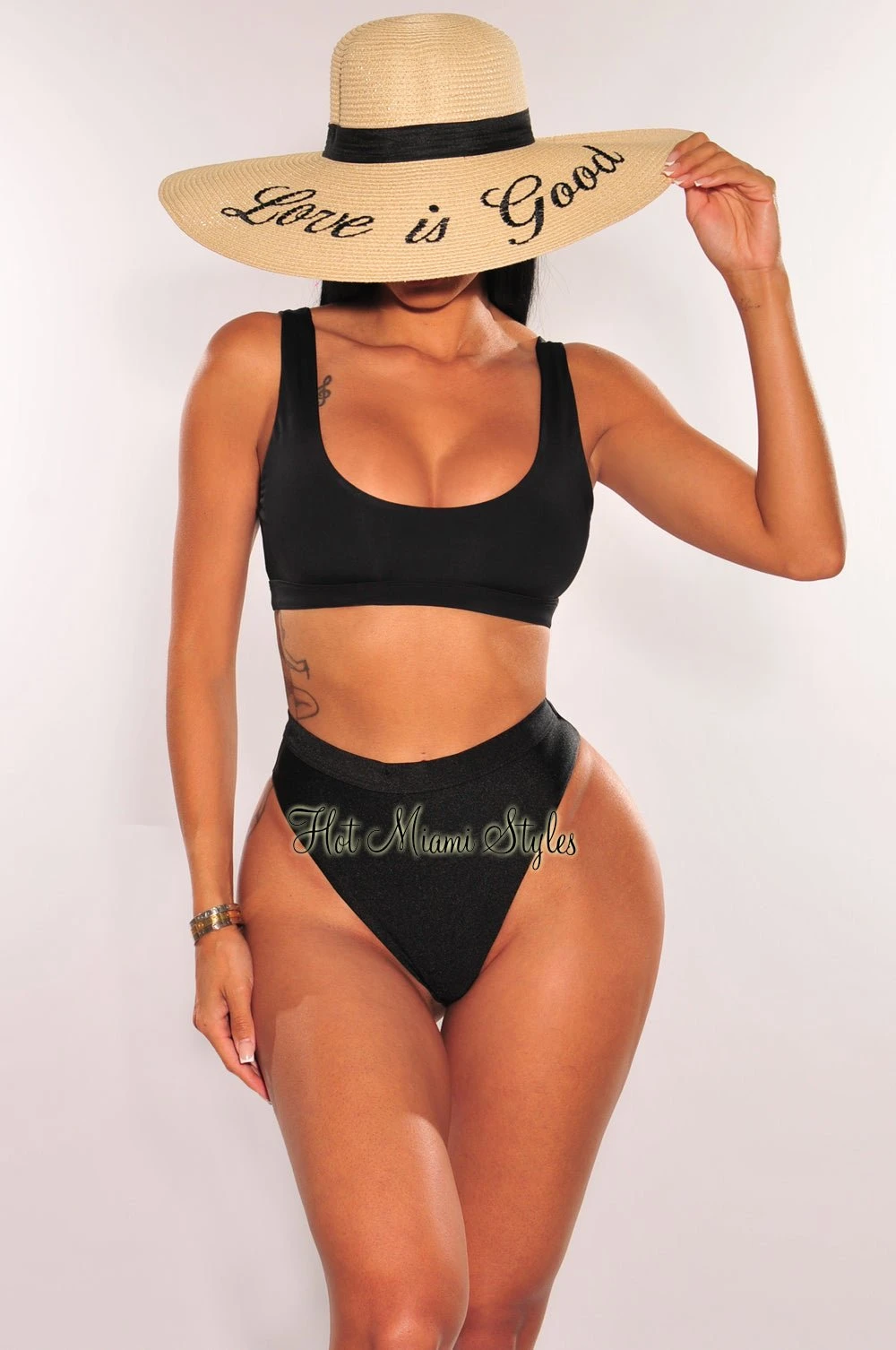 Natural Straw Embroidered “Love Is Good” Floppy Hat