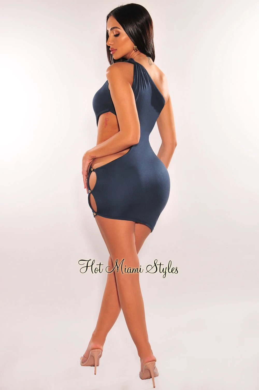 The ultra curve-hugging fit you have been searching for. Made with a knotted one shoulder neckline, featuring a cut out design on a asymmetrical hem design. This is one dress you’ll want to own for nights out.Â