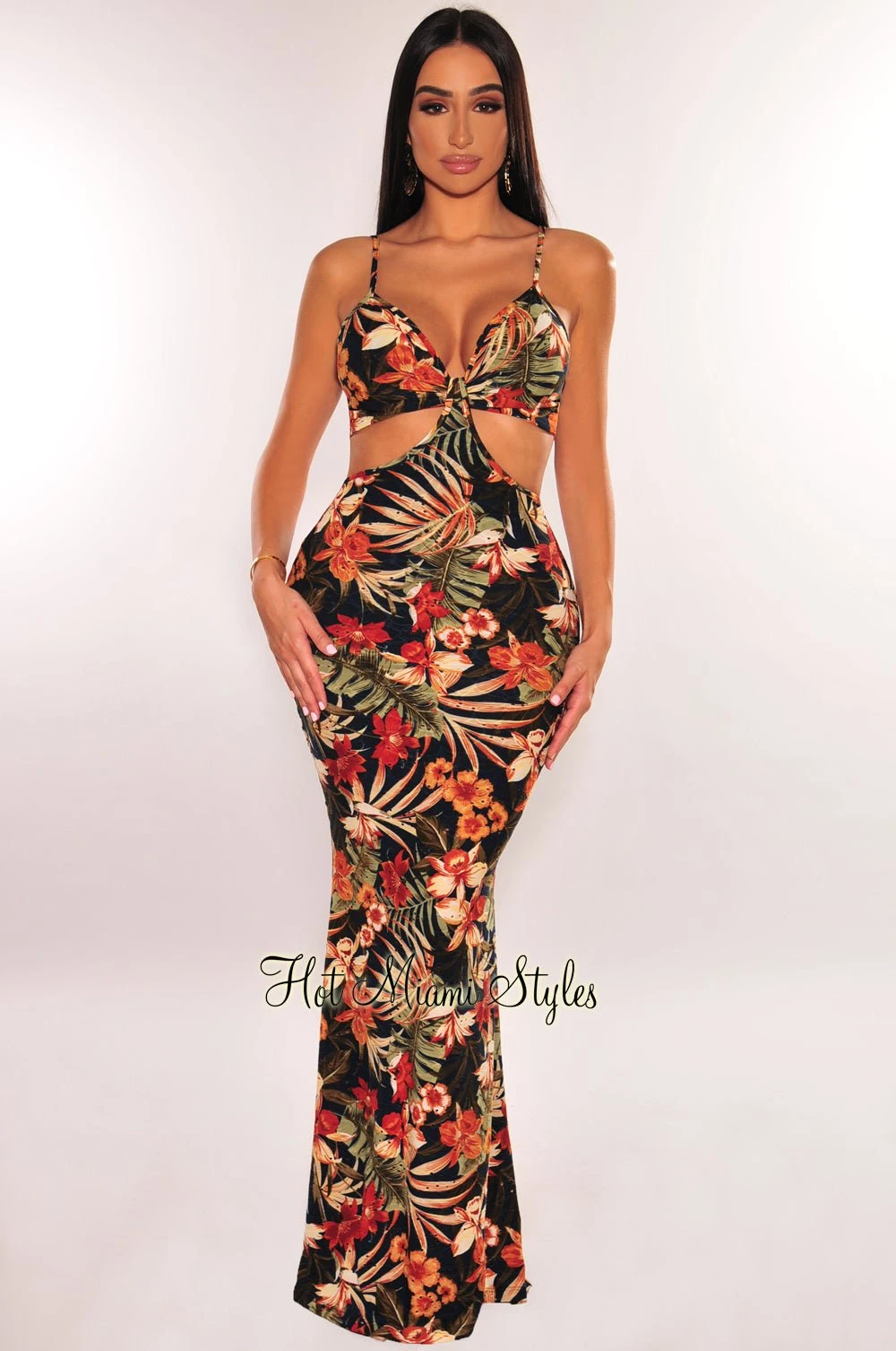 Get ready to showcase every curve in this yellow tropical print cut out maxi dress. Made with an ultra stretchy fabric, cut out design on a feminine silhouette.