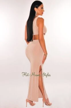 Mocha Ribbed Spaghetti Strap Sleeveless Open Back Midi Dress