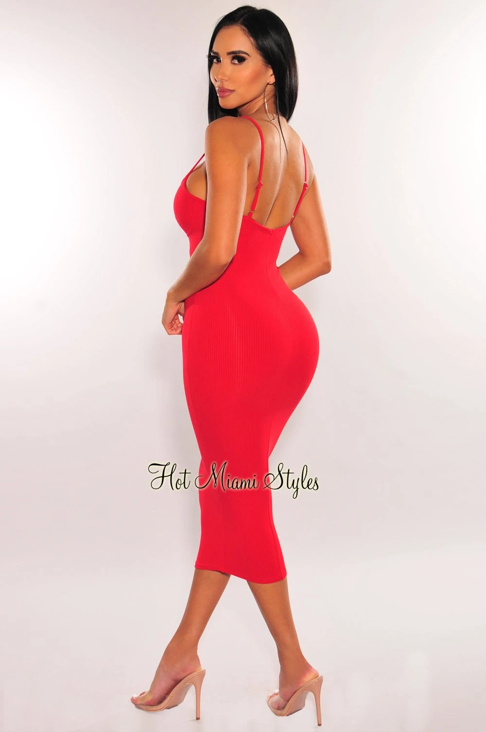 Show off your shape in this figure-worshipping dress. Made of ultra stretchy ribbed fabric on a midi bodycon fit.