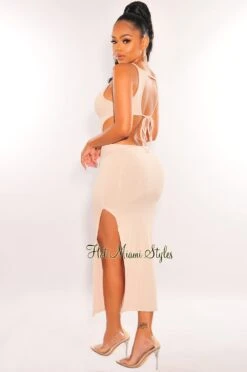 These bottoms are a new season must-have. Featuring a sand linen fabric and feminine lace up side details. Pair with a crop top for a look that will turn heads.