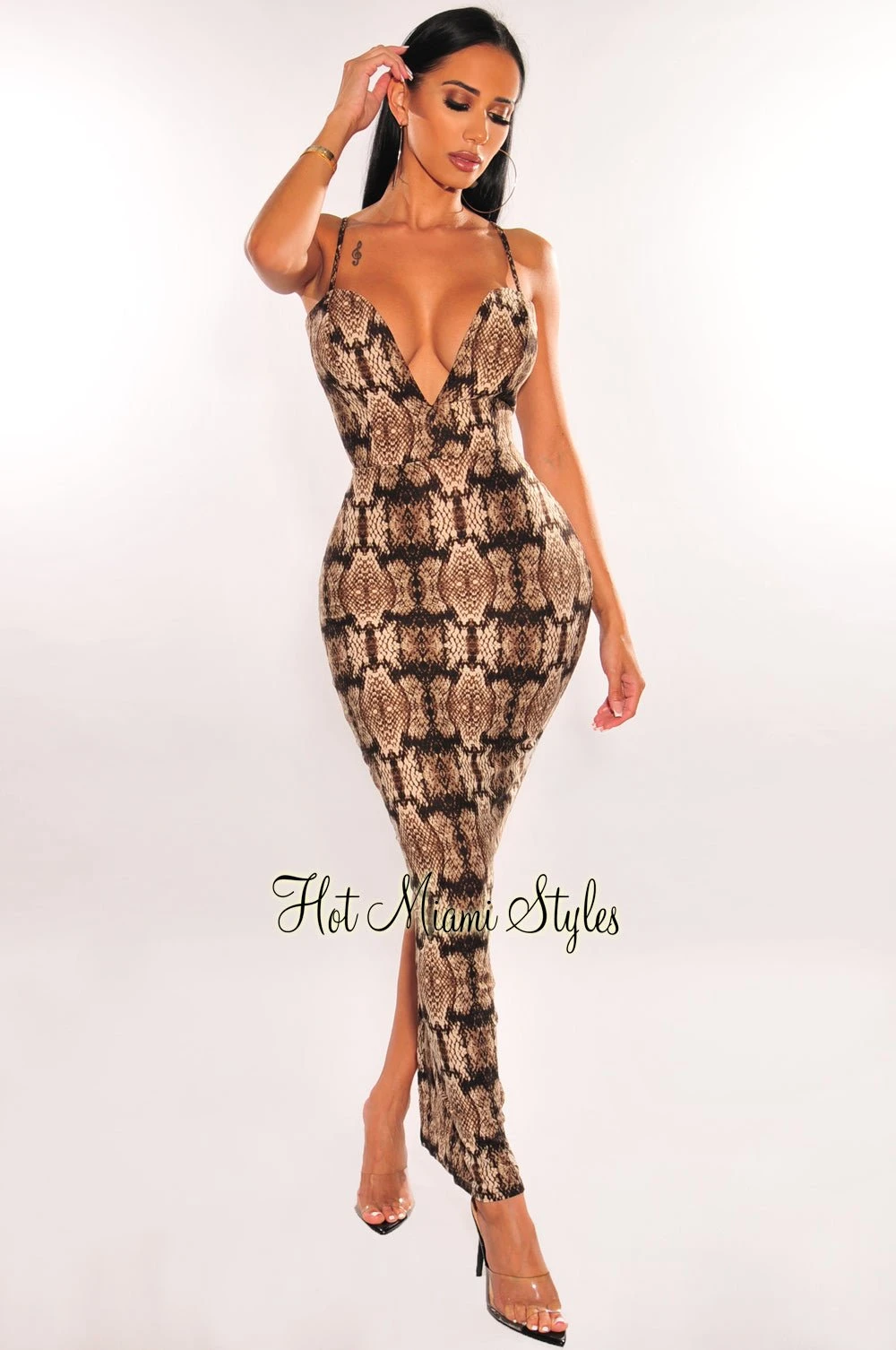 Stud on them with this wildly gorgeous maxi dress. Made with snake print bodice on a sweetheart neckline spaghetti strap dress.