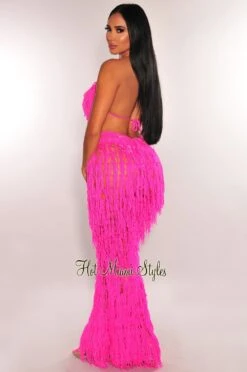 White Crochet Halter Fringe Pants Two Piece Set Cover Up